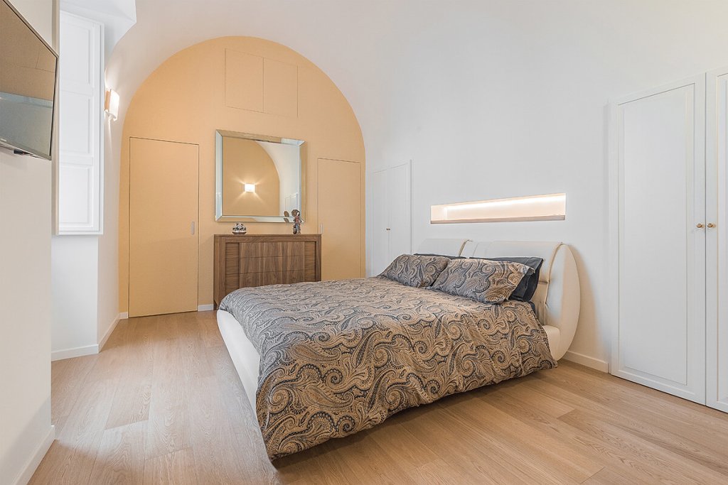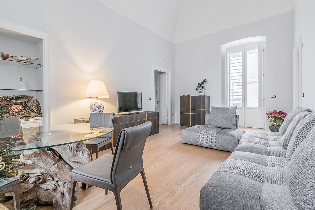 Ristrutturazione completa di un appartamento sito in un edificio di pregio storico nel centro di Bari. L'appartamento si compone di ambienti che si susseguono con volte di un'altezza media di 5 metri, che poggiano su murature portanti spesse quasi 50 cm.