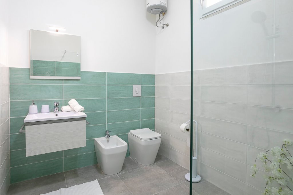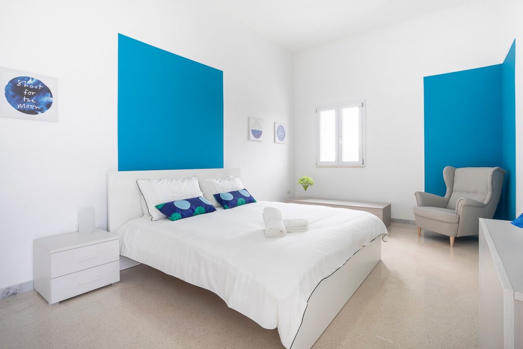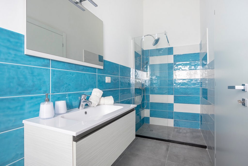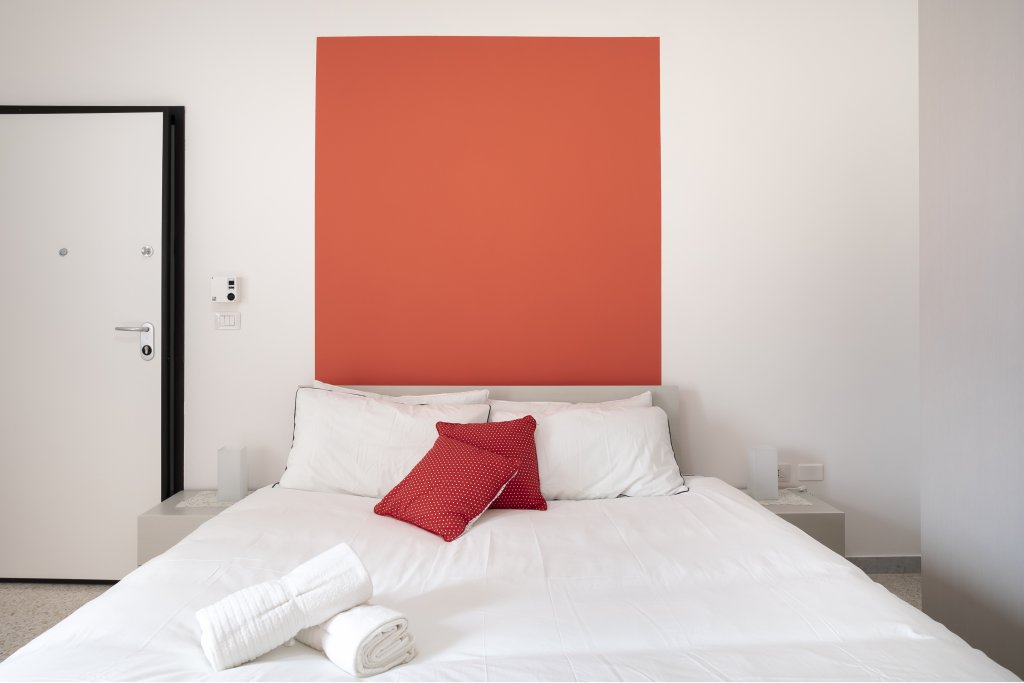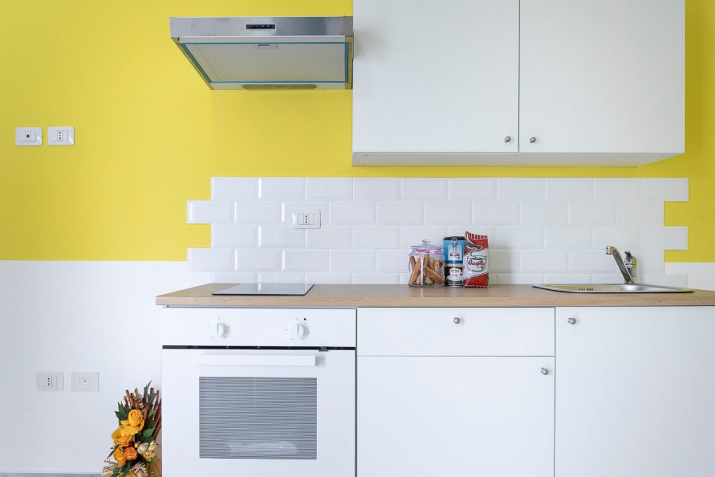 Rinnovare completamente un'abitazione per trasformarla in un b&b è facile se si viene affiancati da un'azienda professionale e da un Ingegnere come Clementina Crupi che, in questo bed & breakfast di Lecce, è riuscita a valorizzare e differenziare ogni stanza con semplicità, regalando un tocco di colore a tutti gli ambienti. Il pavimento originale in graniglia di marmo è stato mantenuto e rilucidato, mentre i rivestimenti e gli arredi sono stati totalmente rinnovati a favore di un look più giovanile e contemporaneo. Ogni stanza della casa vanta ora un colore proprio, dal blu al giallo passando per il corallo (molto di tendenza anche grazie al Pantone 2019 Living Coral). Le nuance degli arredi variano dal grigio al bianco, e ben si sposano con i rivestimenti scelti: mattoncini chiari lucidi in cucina come paraschizzi e piastrelle azzurre, verde menta e bianche nei due bagni. Particolare è la scelta della tinteggiatura nelle stanze. Il blu, ad esempio, fa da testiera al letto e marca l'angolo relax con la poltrona a contrasto; il giallo, al contrario, è stato steso in orizzontale sul perimetro della cucina, a richiamo delle nuance delle sedie e a contorno della parete attrezzata. Il corallo, infine, è stato scelto per la testata della seconda camera da letto e per incorniciare (con due strisce verticali) l'angolo con il tavolo e le sedie in vimini.