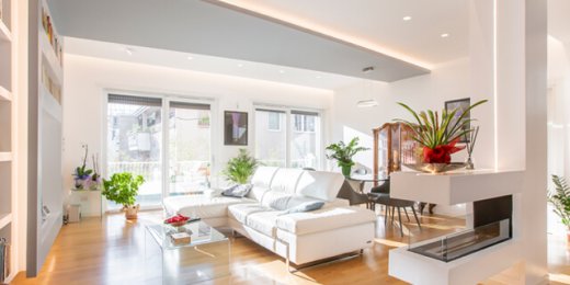 Una casa elegante e curata nel dettaglio, in cui ogni angolo è stato studiato minuziosamente per conferire all'intero appartamento uno stile unico, riconoscibile e di tendenza. La casa di 150 mq ristrutturata a Roma dall'Arch. Giorgio Carta è uno splendido esempio di come lo stile classico e quello moderno possano convivere in armonia, valorizzandosi a vicenda per dar vita a interior di stile, accoglienti e assolutamente piacevoli. La ristrutturazione, mossa dal bisogno di ridistribuire gli spazi della casa al fine di migliorarne la funzionalità, ha previsto un restyling completo, finalizzato a sfruttato il pieno potenziale dell'appartamento per esaltare il grande spazio, progettato per generare un grande "effetto wow" sin dal primissimo accesso. Una volta entrati in casa è difficile non rimanere attratti dalla libreria in cartongesso che si raccorda con il controsoffitto del soggiorno, disegnato ad hoc dall'Architetto con illuminazione integrata (faretti e velette). Particolare è anche il pilastro che divide l'ingresso dal living, a cui si aggrappa un biocamino sospeso. Il soffitto, strutturato su più livelli, sottolineati da due colori differenti (grigio e bianco), presenta tagli di luce che corrono da una parte all'altra del soggiorno dividendolo visivamente sulla lunghezza e donando dinamicità grazie ai volumi differenziati dei controsoffitti. La precedente separazione tra ingresso e soggiorno è stata abbattuta, e ora vi è un passaggio diretto tra living e cucina e zona notte, entrambe divise solo da porte scorrevoli in vetro. Il vetro è anche elemento caratteristico che separa la corte interna dal soggiorno: una splendida vetrata di design è infatti stata progettata su misura dall'Architetto per donare lustro e luminosità a questa stanza. La cucina, ricavata nella zona un tempo dedicata alla "servitù", vanta grandi dimensioni e un accesso diretto al terrazzo. La parete attrezzata ruota intorno al perimetro, e i fornelli sono stati inseriti in un mobile separato con cappa a sospensione, direttamente affacciato sul tavolo in legno, dal colore del parquet rovere posato in tutta casa. Nella vecchia cucina, situata prima nella zona notte, è stata spostata la prima camera da letto matrimoniale, con tinteggiatura antracite spatolata sulla parete della testiera del letto e illuminazione a sfioro integrata al controsoffitto. La seconda camera da letto, sempre con illuminazione ad hoc progettata per dar luce alla parete alle spalle del letto, ha un carattere più mediterraneo classico, dalle nuance azzurre. La terza, con lo stesso gioco di illuminazione, vanta invece tinte più neutre, tra il tortora e il bianco, e una testiera del letto a mezza altezza in legno. Completano la casa due bagni, entrambi sulle sfumature del bianco. Il primo, più grande, è formato da una comoda vasca da bagno con idromassaggio, sanitari sospesi, rivestimenti in mattoncino e luci led che cambiano colore; il secondo, dalle dimensioni leggermente ridotte, ha una doccia situata sulla lunghezza (proprio sotto la finestra) e rivestimenti in gres effetto marmo.
