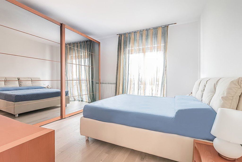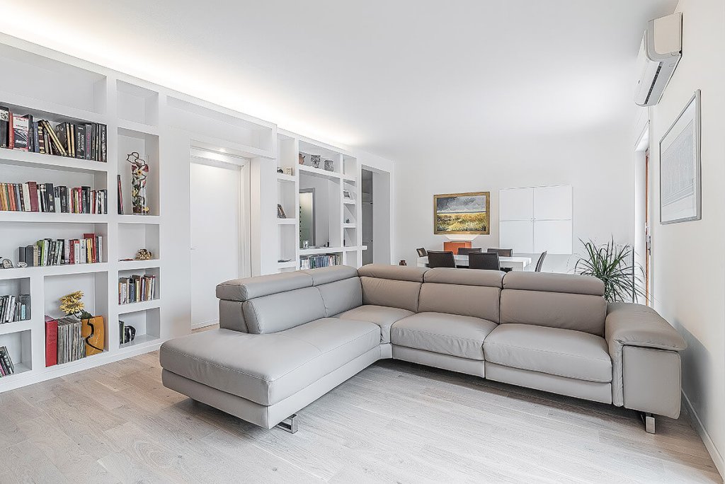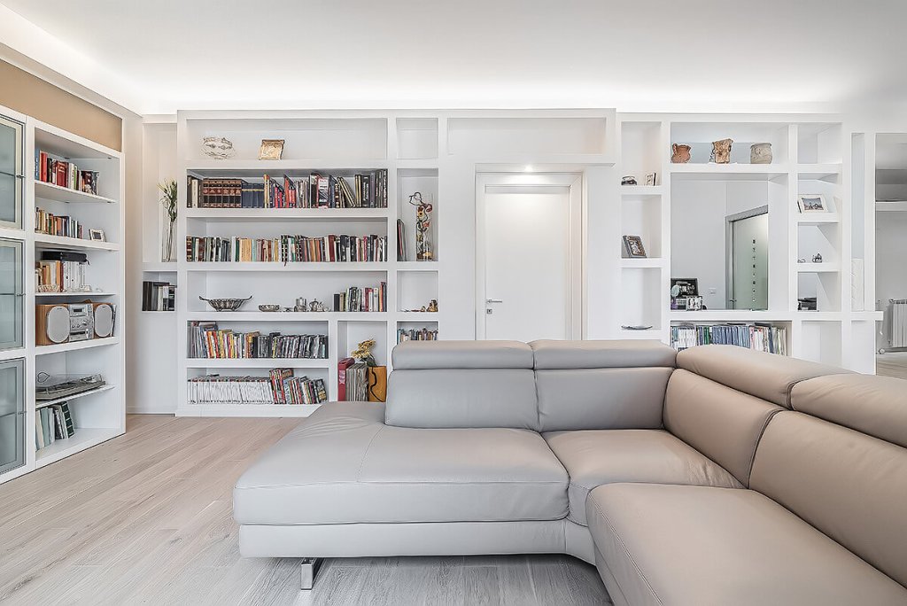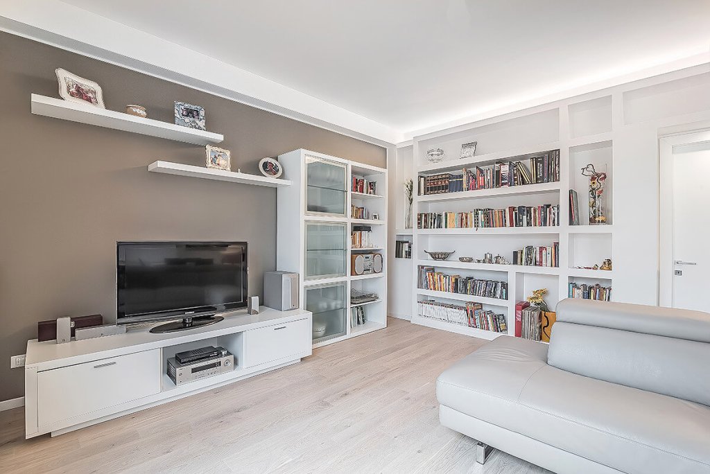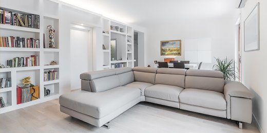 Ristrutturazione completa di un appartamento di 130 mq situato in zona Giotto a Palermo. Il progetto ha previsto la ridistribuzione degli spazi interni, con la realizzazione di un'ampia zona giorno con studio e cucina abitabile e di una zona notte con due camere e due bagni, di cui uno a servizio della camera matrimoniale. L’appartamento, situato all’ultimo piano di una palazzina, è molto luminoso e arioso anche grazie all’uso di colori chiari per le pareti e per gli arredi dal gusto moderno, che ben si abbinano al pavimento in parquet dai toni naturali. Nella zona giorno una parete color tortora caratterizza la zona tv, mentre una parete attrezzata con una libreria in muratura illuminata con luce radente incornicia le aperture che lo mettono in comunicazione con l’ingresso, con lo studio a vista e con la zona notte. Nei bagni sono stati posati rivestimenti in grès porcellanato che alternano fantasie a righe orizzontali a piastrelle effetto cemento per il pavimento.