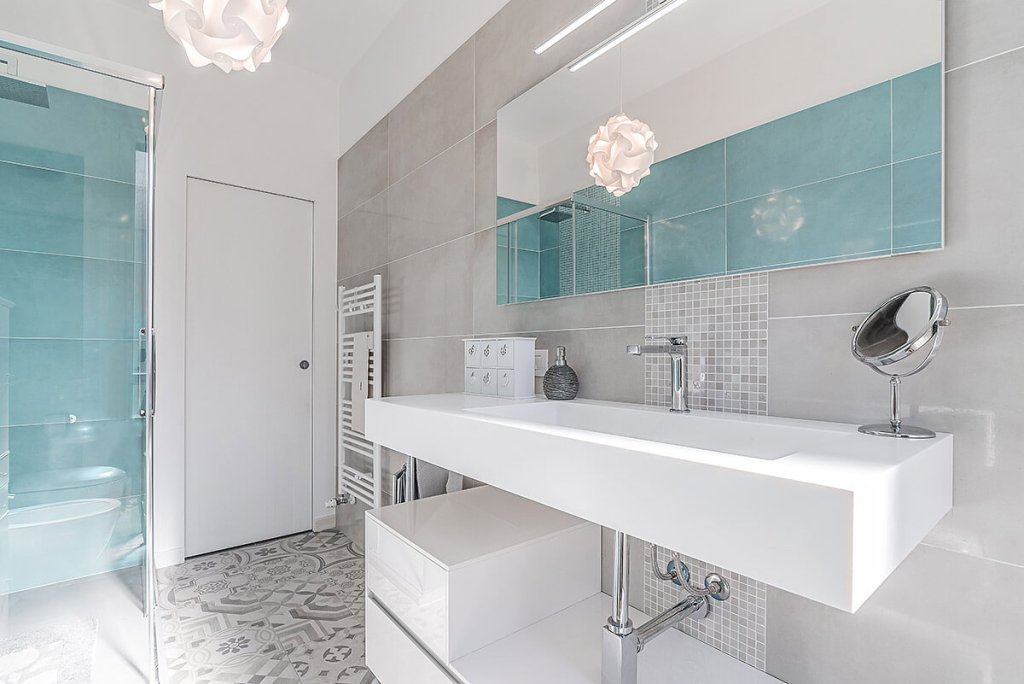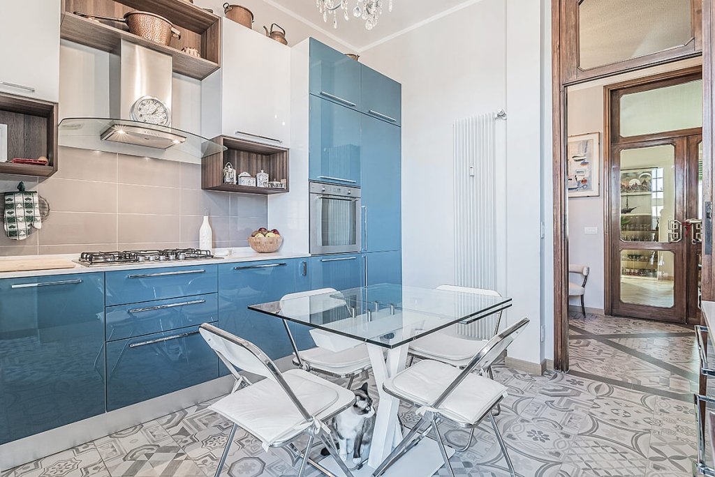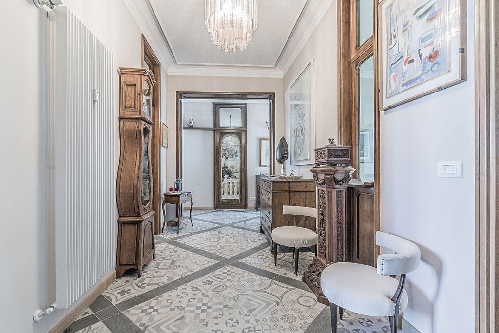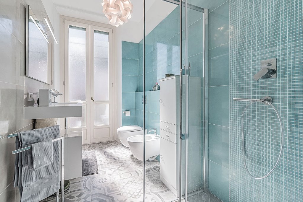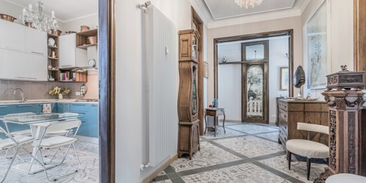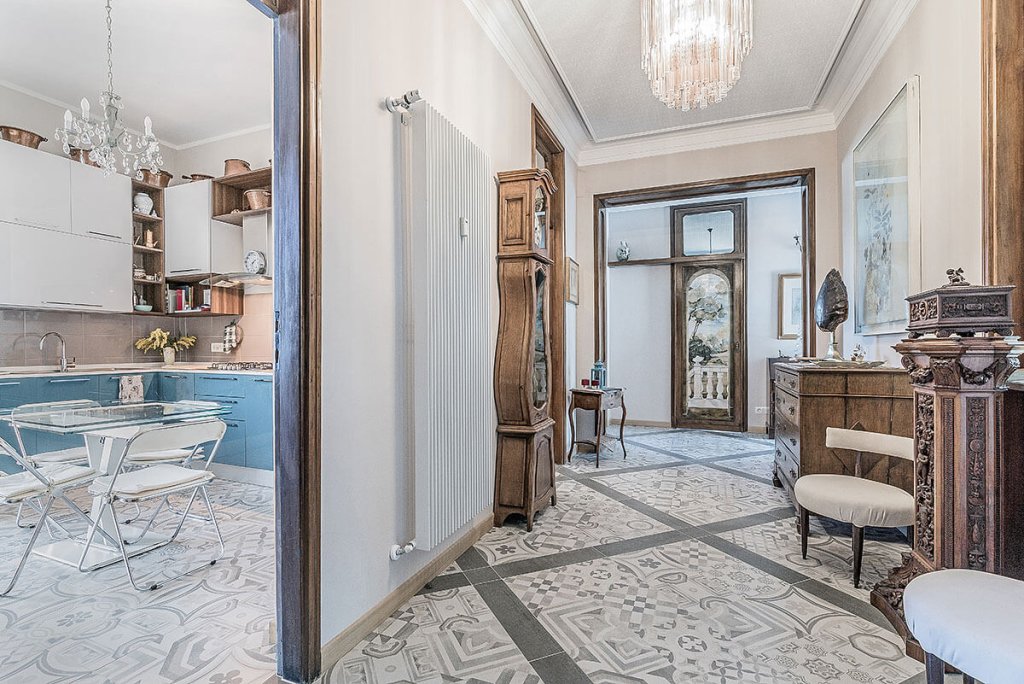 Ristrutturazione parziale di un appartamento di 150 mq situato in zona San Salvario a Torino. L'appartamento non veniva ristrutturato da almeno 50 anni per cui si voleva dare una nuova immagine generale alla casa, senza però perdere alcuni caratteri originari. I clienti hanno infatti richiesto espressamente di mantenere i particolari controsoffitti, le porte in legno antico ed il parquet dove presente. Nell'ingresso, nella cucina e nei bagni la vecchia pavimentazione è stata sostituita con un grès porcellanato rettificato di formato esagonale che richiama l'effetto delle cementine, mentre le pareti del bagno sono state rivestite con un grès ed un mosaico color silver e tiffany.